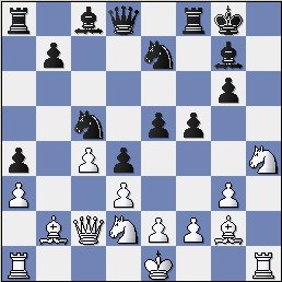 14...b4 15.Na4 Bg7 16.c3 0-0 17.Rc1 bxc3 18.Nxc3 Rfe8 19.Rfd1 Qd8 20.Qf2 Rc8 21.Bf1 Bf8 22.h4 Na5